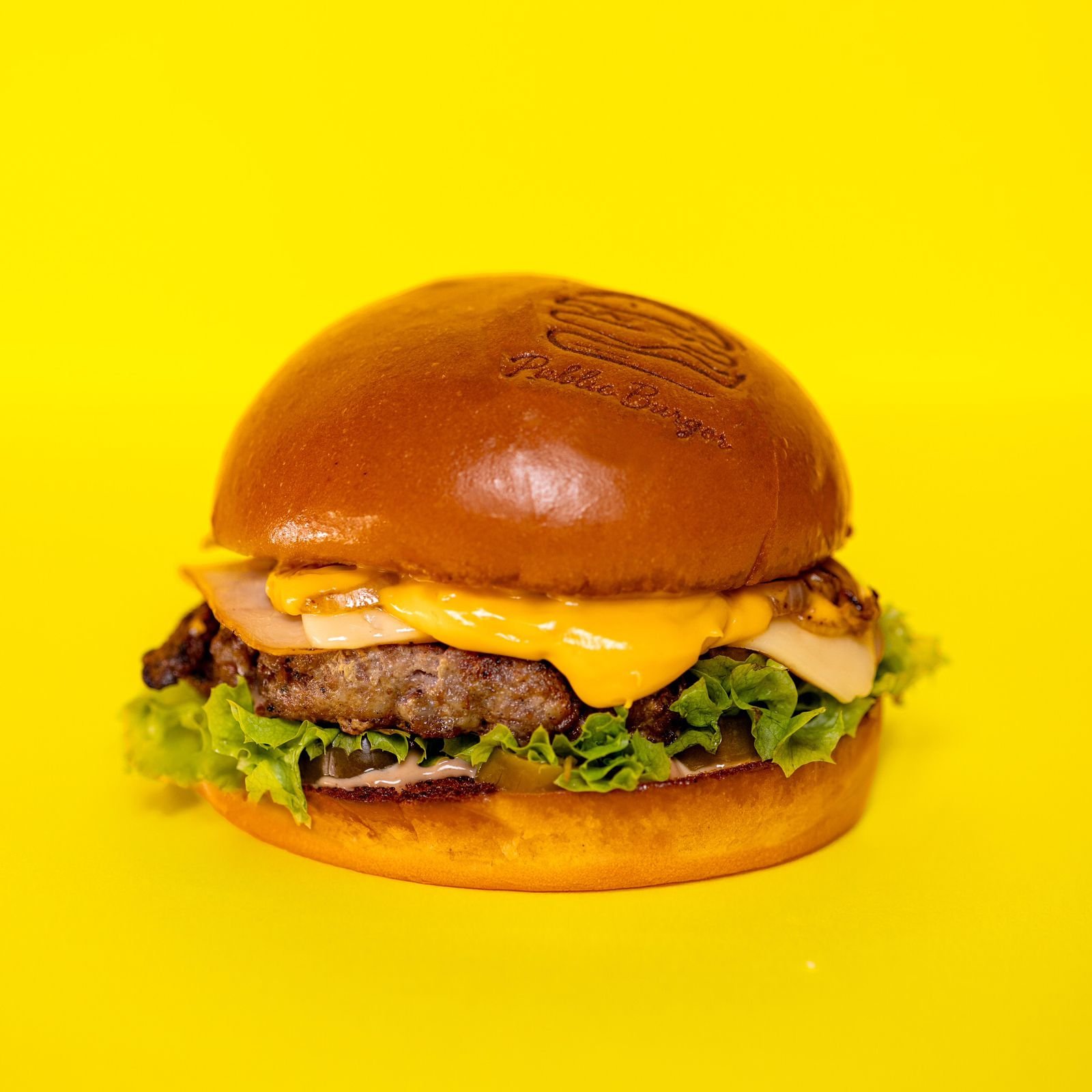 Double brioche bun, 160g 2 smashed grilled beef patties, topped with cheddar cheese, dill pickles, and classic sauce
